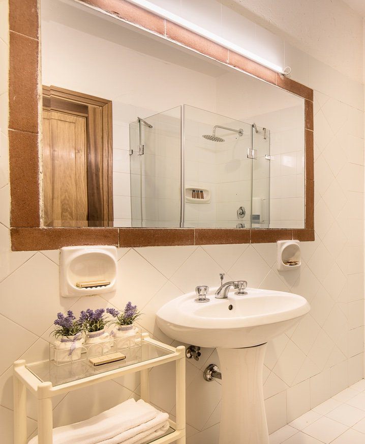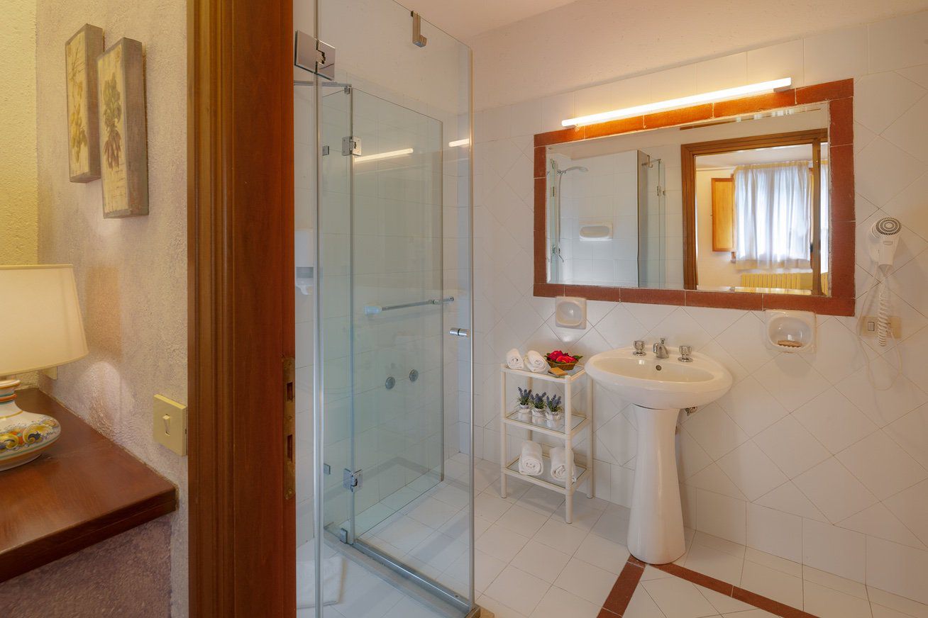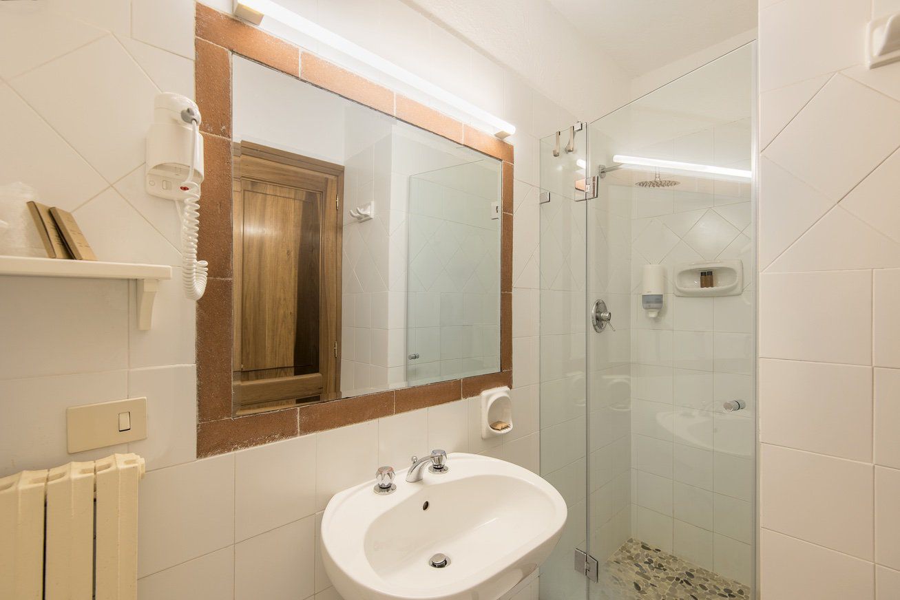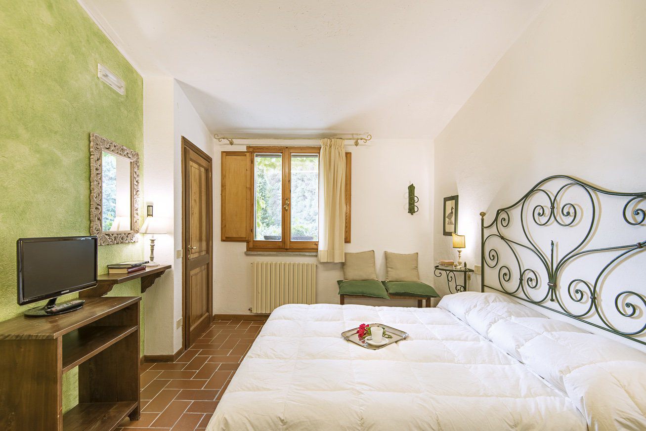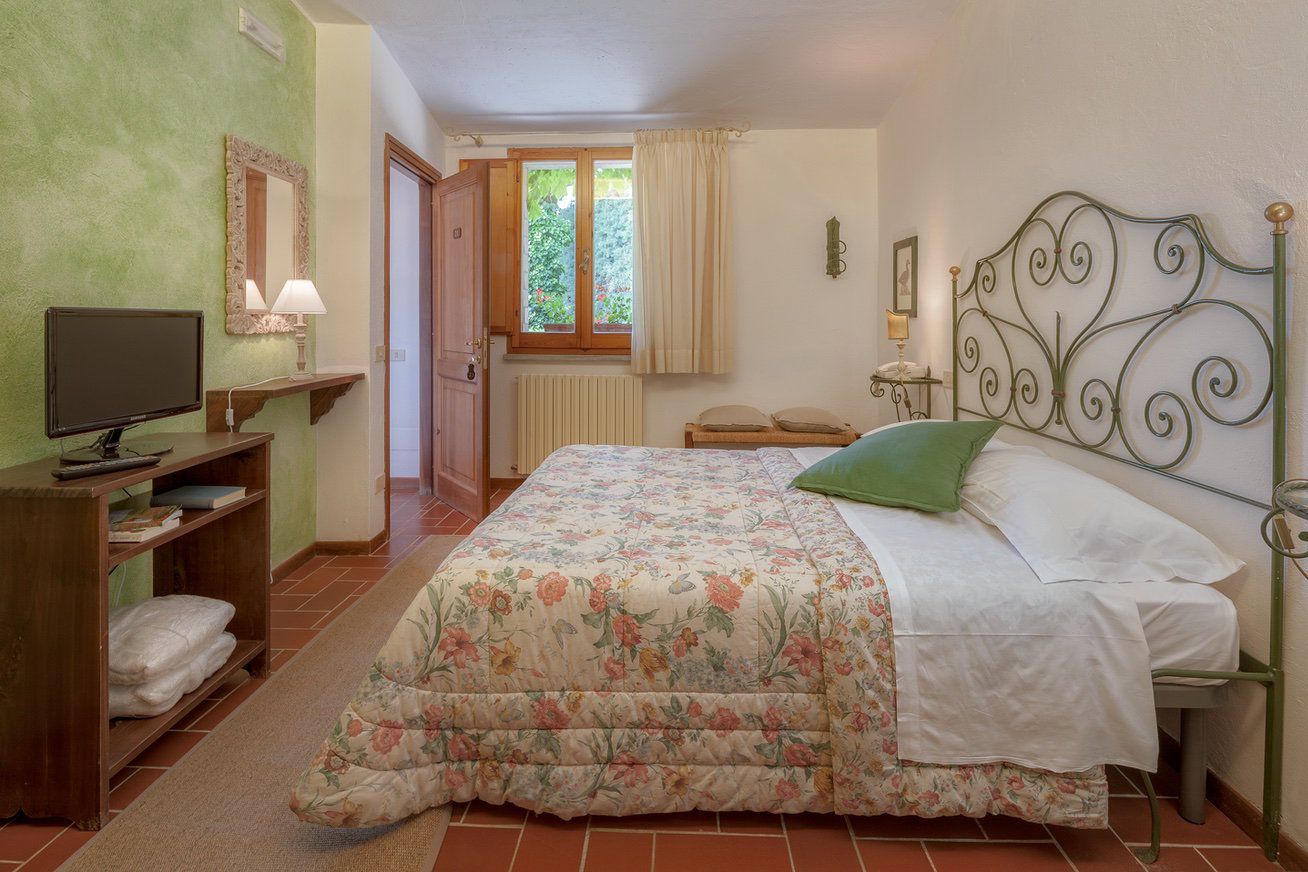 double bedroom with TV (not convertible into a twin) and en suite bathroom with shower (no hand held shower).