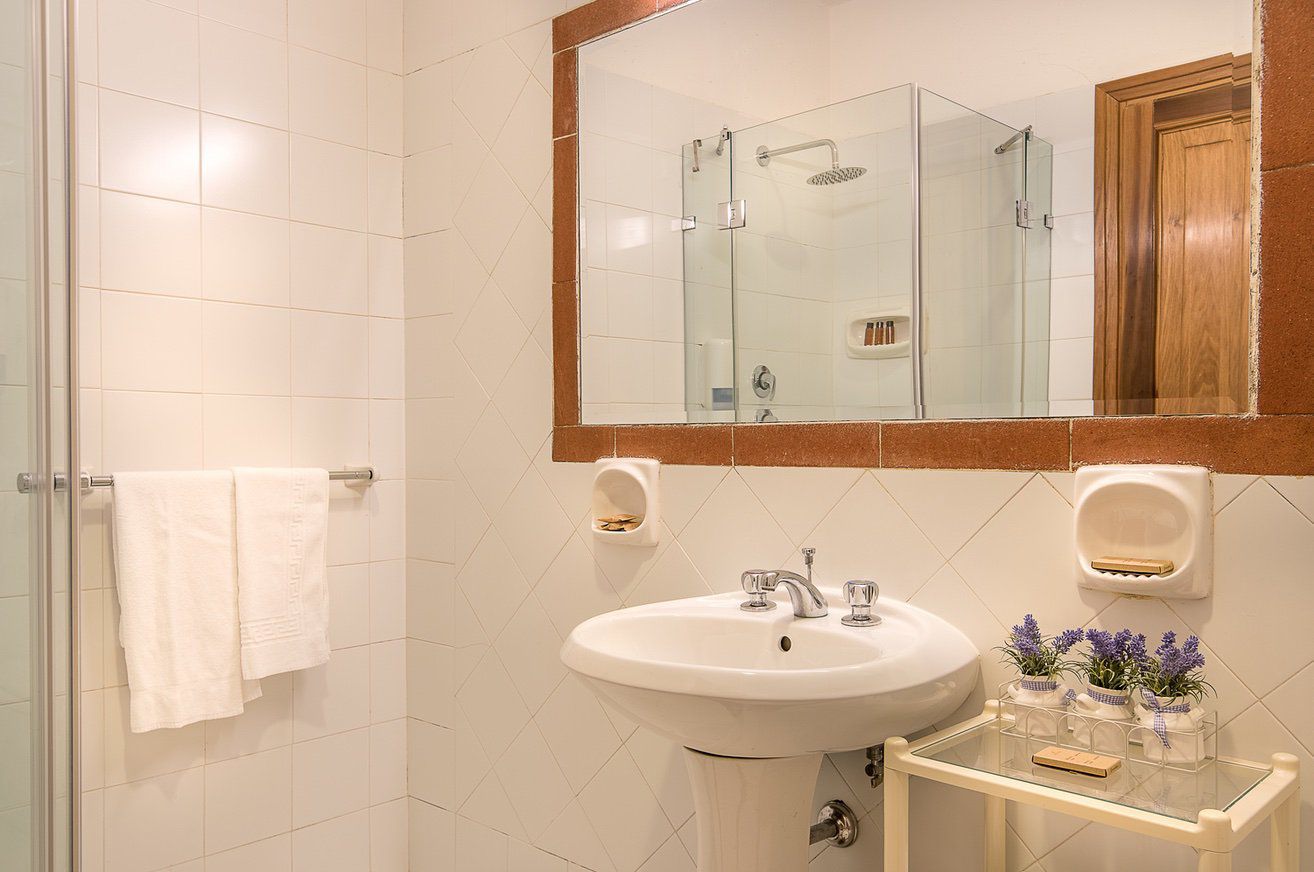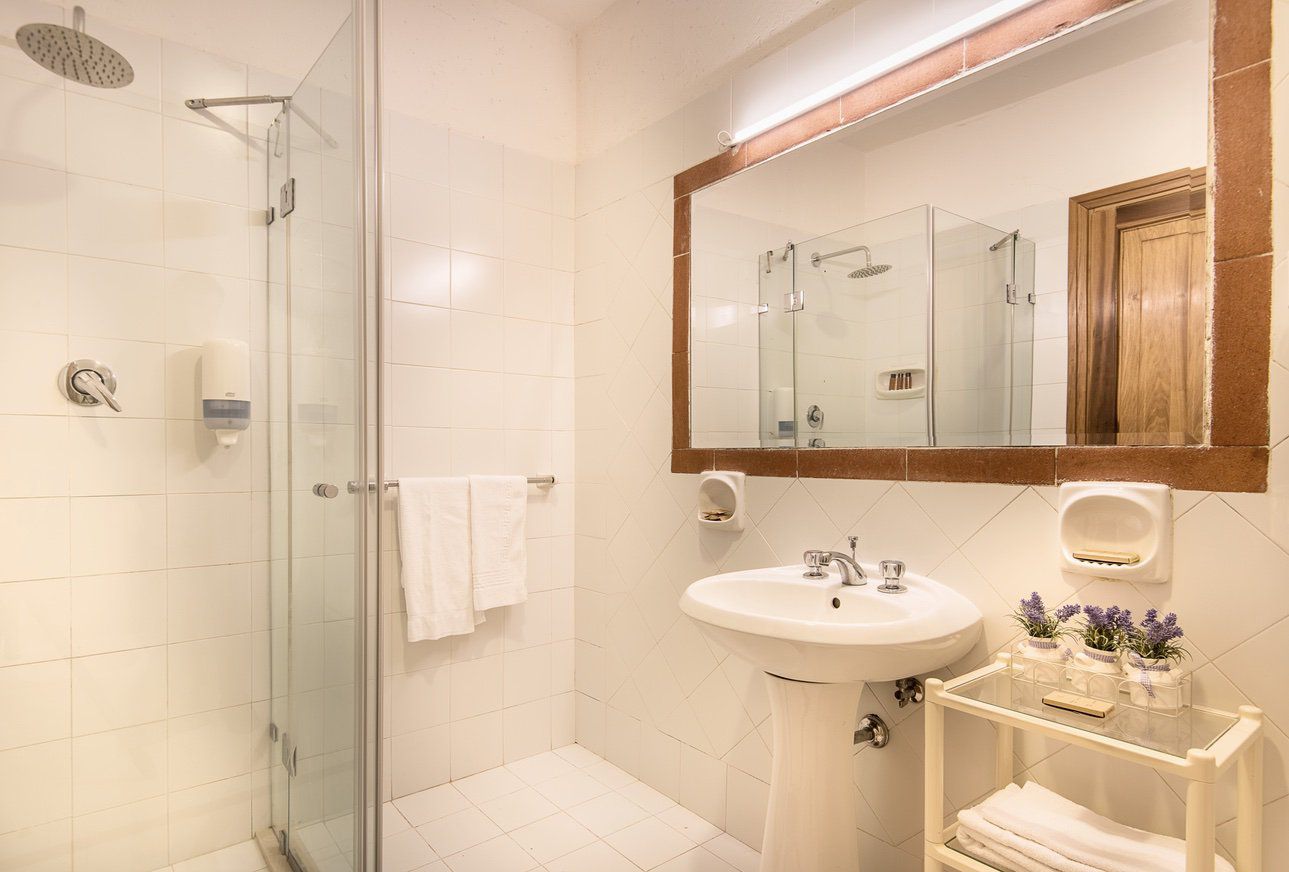 twin bedroom with TV (convertible into a double) and en suite bathroom with shower (no hand held shower).
