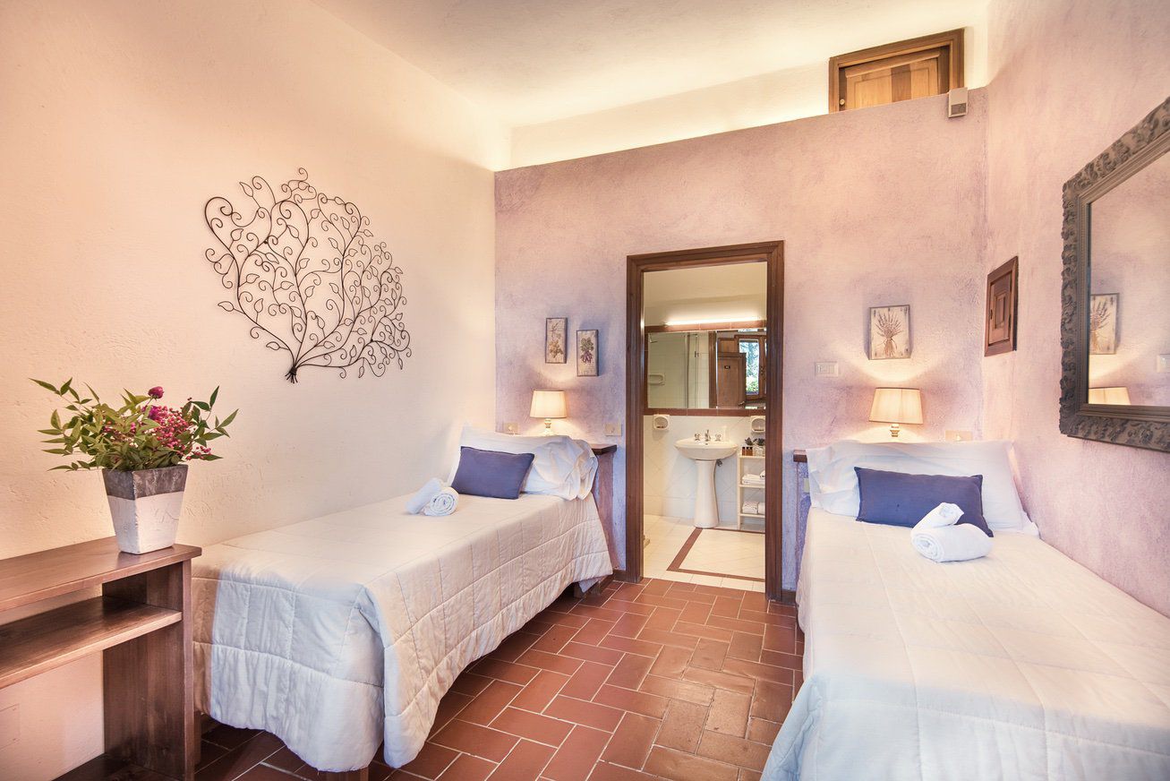 twin bedroom with TV (convertible into a double) and en suite bathroom with shower.